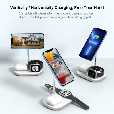 5 in on wireless charger for smartwatch phone and earbuds with clock and night light function
