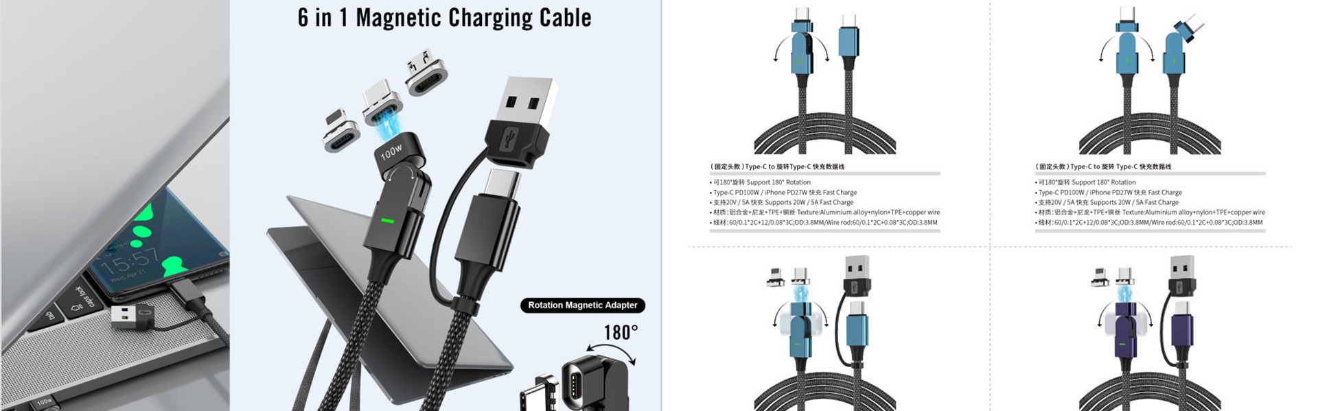 2 in one Massager + PD 100W charging cable